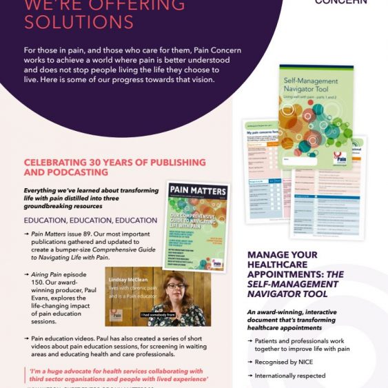 For those in pain, and those who care for them, Pain Concern works towards a world where pain is better understood and does not stop people living the life they choose to live. Our latest Impact Report shares what we achieved this year, and what we’re focusing on next.
